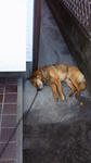 今回の台風で、犬小屋ごと犬が飛ぶかもしれん、と祐介を玄関先に避難させようとしたのですが、散歩用のリードに繋いだら散歩と勘違いしてですね…。